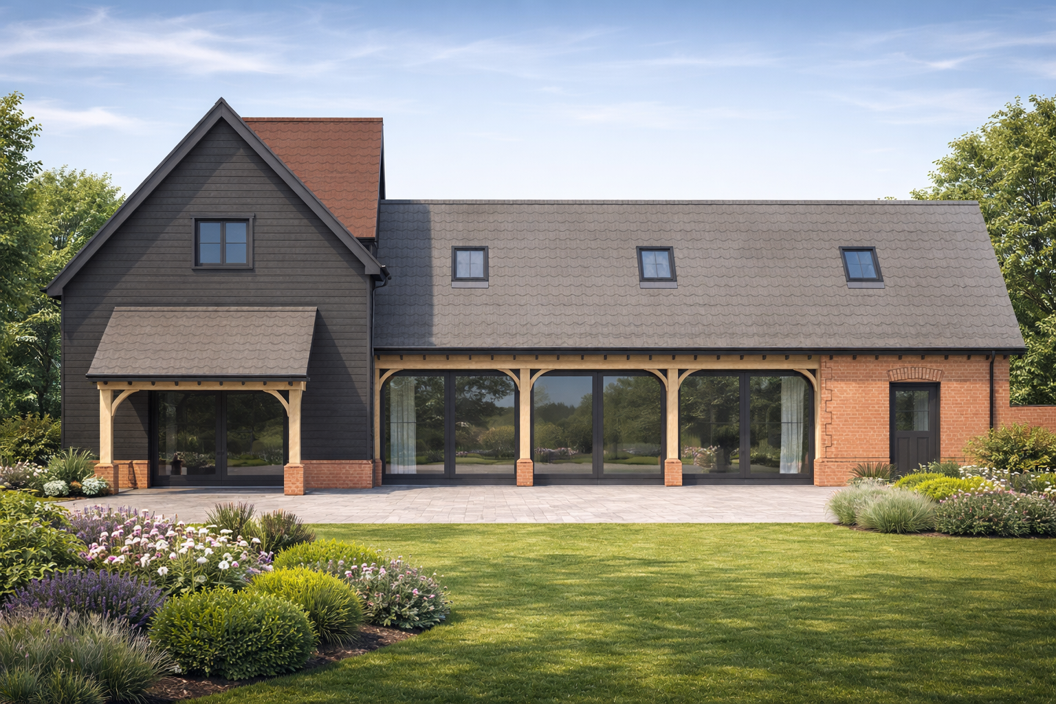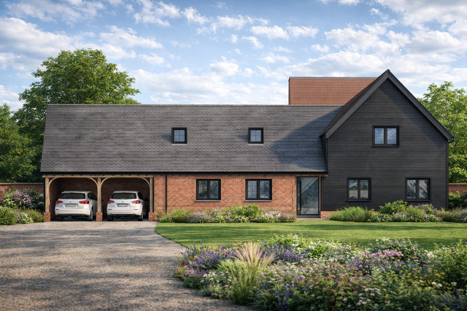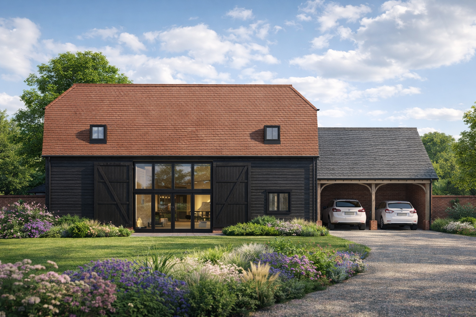 Great attention to detail has gone into correctly recreating these barns externally from the barn doors to the timber car ports. The internal living accommodation suits modern living with open plan family areas and cosy private spaces too.